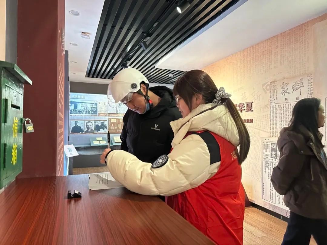 今年寒假期间,我校八路军志愿者服务队秉承着“无志愿,不青春”的志愿精神,以志愿之名积极服务于纪念馆的各个岗位,为广大人民群众提供最热情的服务。他们在入口导览处始终坚守,向群众指引方向,以实际行动诠释着新时代青年的责任与担当。