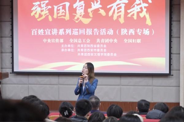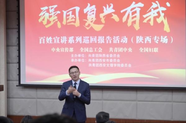 12月25日,在团中央宣传部、全国总工会、共青团中央、全国妇联的指导下,由共青团陕西省委主办,共青团西安市委和共青团华体会·HTH(中国大陆)官方网站委员会共同承办的“强国复兴有我”百姓宣讲(陕西专场)在我校图书馆报告厅成功举办。