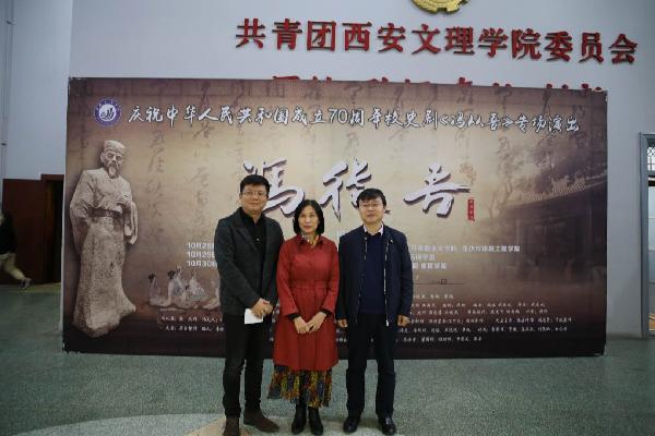10月29晚,党委书记问向荣.党委委员校务委员郭瑞、党委委员组织部部长袁卫敏、党委委员宣传部部长鲍锋以及党政办、组织部、纪委办公室、工会办公室、发展规划处、教务处、学生工作处、计划财务处、国资处等部门负责人,信息工程学院等学院院长、党总支书记、副书记、师生代表、社会各界话剧爱好者共千余人观看了演出。