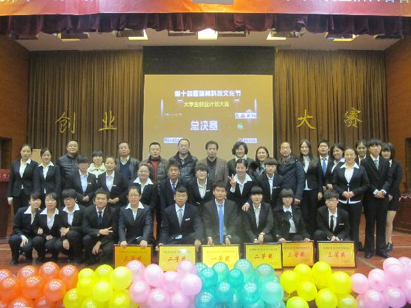 2014年12月24日下午4:00,华体会·HTH(中国大陆)官方网站第十四届科技文化节大学生创业计划大赛决赛在明德楼A区报告厅举行。副校长韩权、校团委书记成瑶、物电院党总支书记杨军、文化与旅游学院书记骆尚利、思政部党总支副书记巩建萍、文化与旅游学院党总支副书记杨燕华、商学院党总支书记张剑萍、副书记李晓煜、陕西省创业俱乐部主席团等作为嘉宾参加本次比赛。担任此次大赛的评委有:教务处副处长徐东升、校团委教工团总支书记王莉、商学院院长张丹、商学院教学副院长徐寄鸿、商学院教学副院长刘鸿明、商学院教师吴琦。