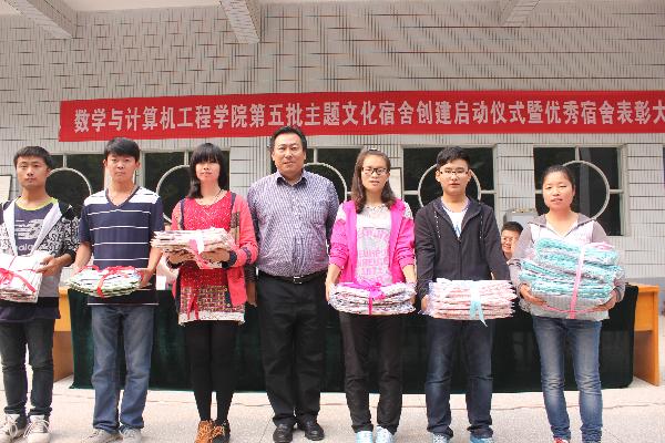 大会首先由马修海老师宣布了《数学与计算机工程学院对2013——2014学年优秀主题文化宿舍进行表彰的决定》,会上表彰了综合优秀奖6个、单项优秀奖6个、鼓励奖10个;院分团委书记张莹宣读《我爱我家——优美床铺我设计活动实施方案》;院学工办主任宋涛宣读《数学与计算机工程学院主题文化宿舍创建活动方案》;优秀宿舍的学生代表和第五批创建主题文化宿舍学生代表分别进行了发言,表达了主题文化宿舍创建决心和信心。