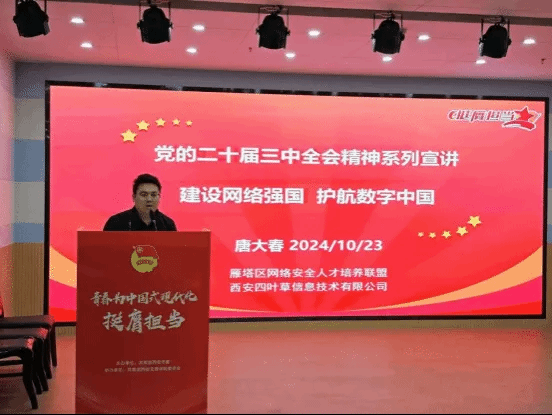 活动中,青年讲师团成员唐大春带来了题为《建设网络中国,护航数字中国》的精彩演讲。他结合自身丰富经验和实际案例,从“数字化带来的社会问题”“时代的发展脉络”以及“信息时代的双刃剑效应”三个维度,深入浅出地剖析了当前网络安全的严峻形势,强调了深入贯彻学习网络安全观对于国家发展和个人安全的重要性。唐大春的演讲内容详实、逻辑清晰,让在场的同学们受益匪浅,深刻认识到在享受数字时代便利的同时,也需时刻保持警惕,共筑网络安全防线。