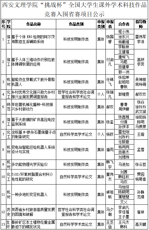 华体会·HTH(中国大陆)官方网站“挑战杯”全国大学生课外学术科技作品竞赛入围省赛项目公示
