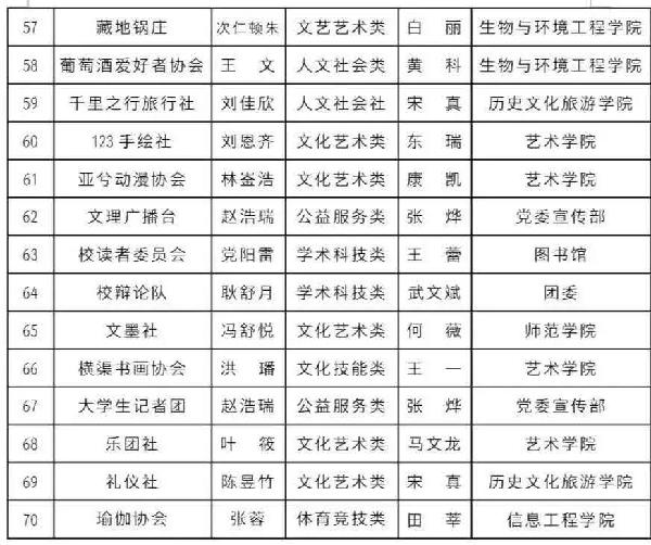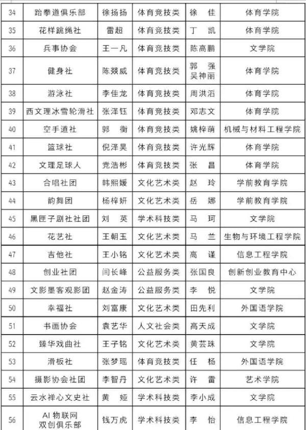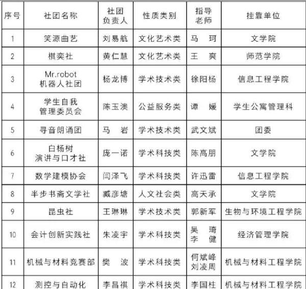 文化旅游传媒社、印象西安、台球社、现代舞社团、AIR人工智能机器人。(注销原因:自行注销。)